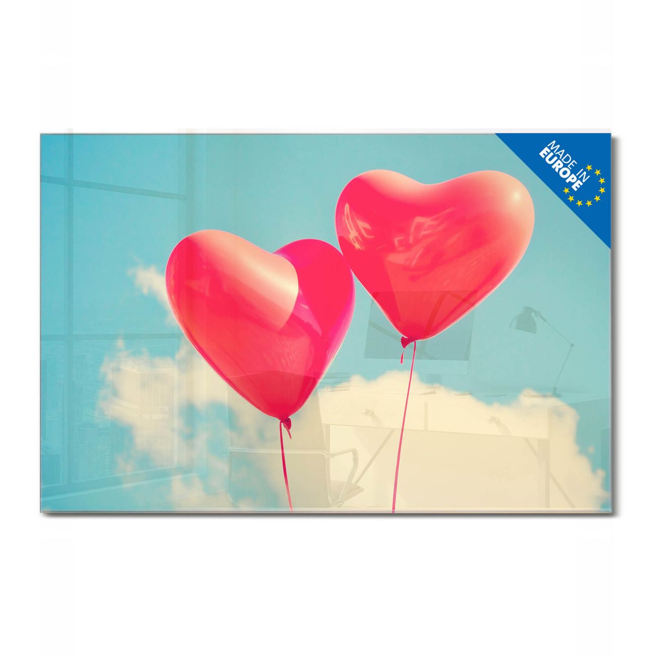 Material: 4mm Sicherheitsglas mit Metallrückwand Eigenschaften: beschreibbar, magnetisch, kratzfest Maße: 45x30x0,6cm, 2,03kg schwer Motiv Nummer 11369 Wolke Sieben Zubehör: inklusive 4 Neodym-Magnete