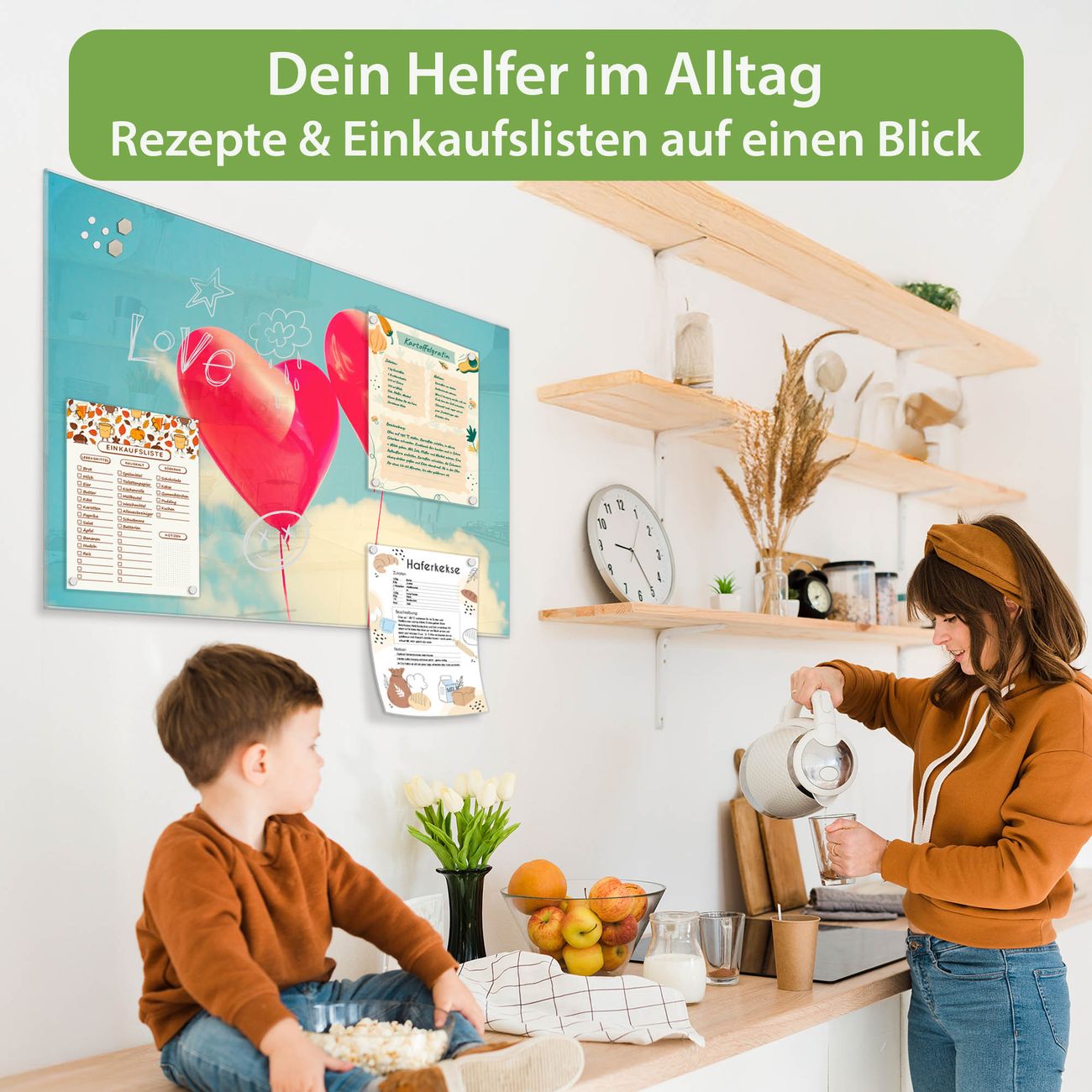 Auf der glatten Glasoberfläche lassen sich Termine, Rezepte oder Notizen ganz einfach mit Kreidestiften festhalten und rückstandslos entfernen. Starke Neodym-Magnete halten Ihre wichtigsten Erinnerungen sicher an Ort und Stelle. So entsteht Ihre ganz persönliche Ideenwand - jeden Tag neu.