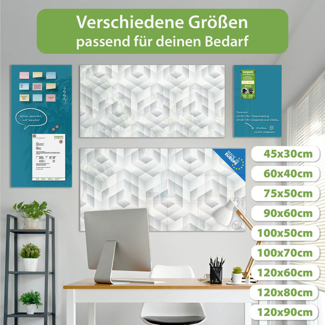 Glas Magnettafel im Querformat Motiv Würfel Grau