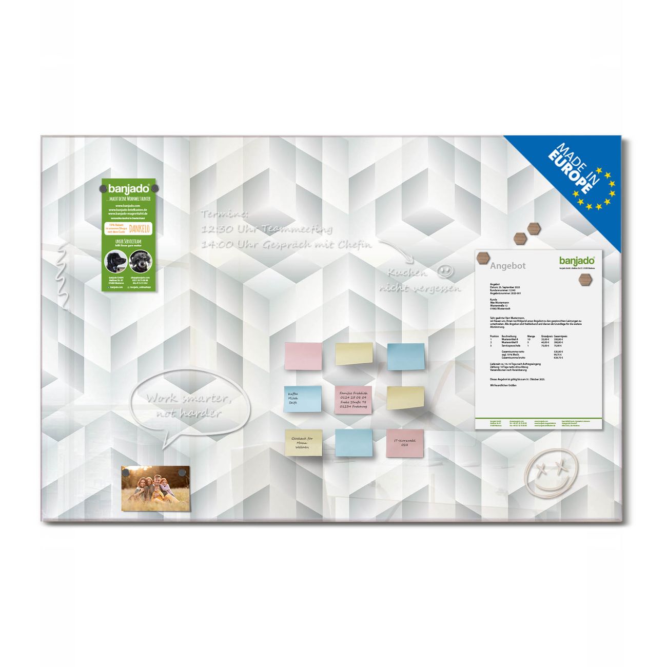 Glas Magnettafel im Querformat Motiv Würfel Grau