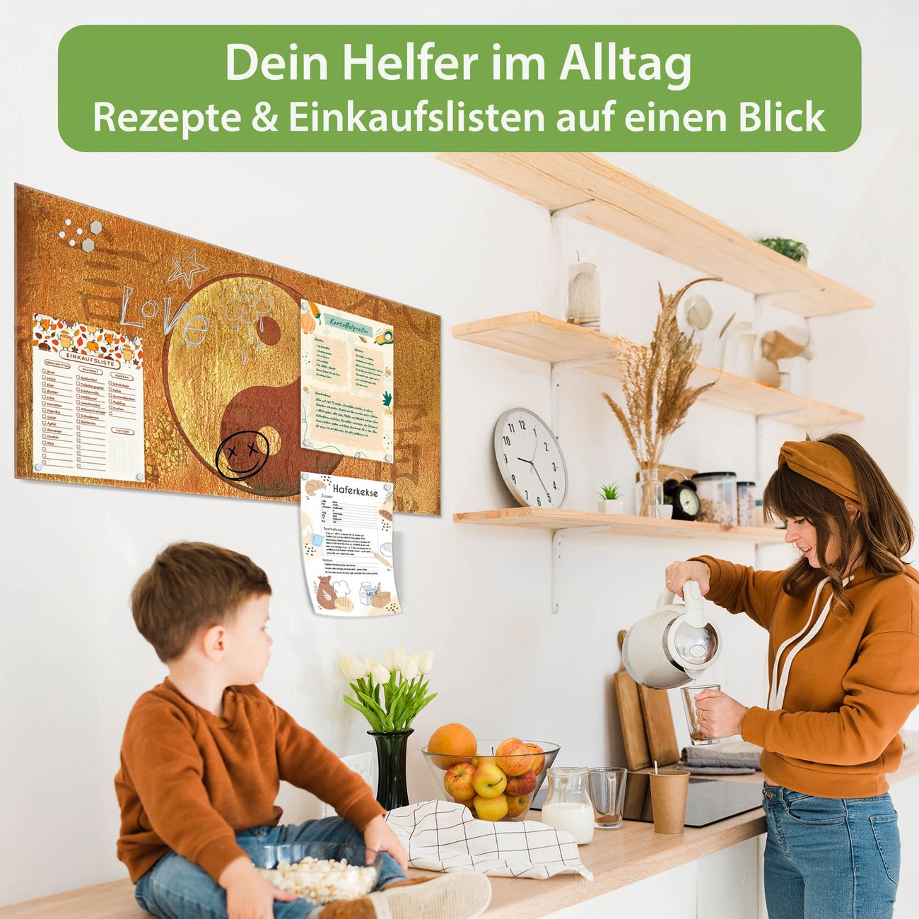 Ein Stück Design, das Ihren Alltag organisiert. Schreiben, heften, inspirieren - alles an einem Ort. Qualität, die man spürt. Montage leicht gemacht. Handwerk mit Herz - veredelt in Sachsen. Einzigartiges Design mit Motiv Motiv Yin Yang Beschreibbare Glasoberfläche, leicht zu reinigen Starke Magnetkraft durch Stahlrückwand Inklusive 4 Neodym-Magneten Flexible Montageoptionen Handveredelt in Sachsen - Qualität, die bleibt