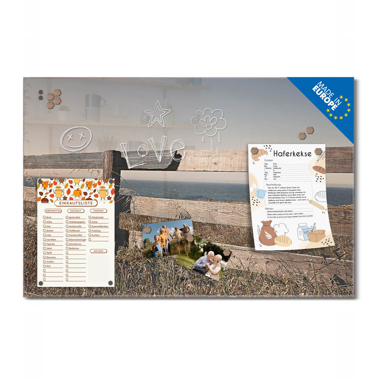 Die banjado Glas Magnettafel mit dem Motiv Motiv Zaun am Meer verbindet Funktionalität mit Stil. Sie ersetzt das Zettelchaos durch klare Strukturen und bringt dabei eine warme, natürliche Atmosphäre in Ihr Zuhause. Ob im Büro, in der Küche oder im Eingangsbereich - dieses Design-Board zieht Blicke an und sorgt für Ordnung mit Charakter.