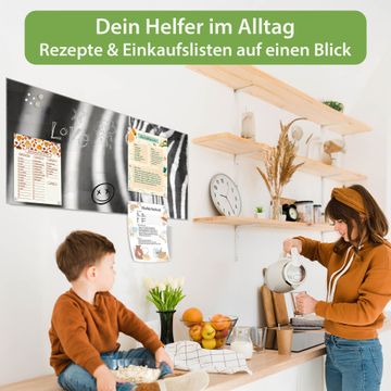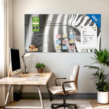 Auf der glatten Glasoberfläche lassen sich Termine, Rezepte oder Notizen ganz einfach mit Kreidestiften festhalten und rückstandslos entfernen. Starke Neodym-Magnete halten Ihre wichtigsten Erinnerungen sicher an Ort und Stelle. So entsteht Ihre ganz persönliche Ideenwand - jeden Tag neu.