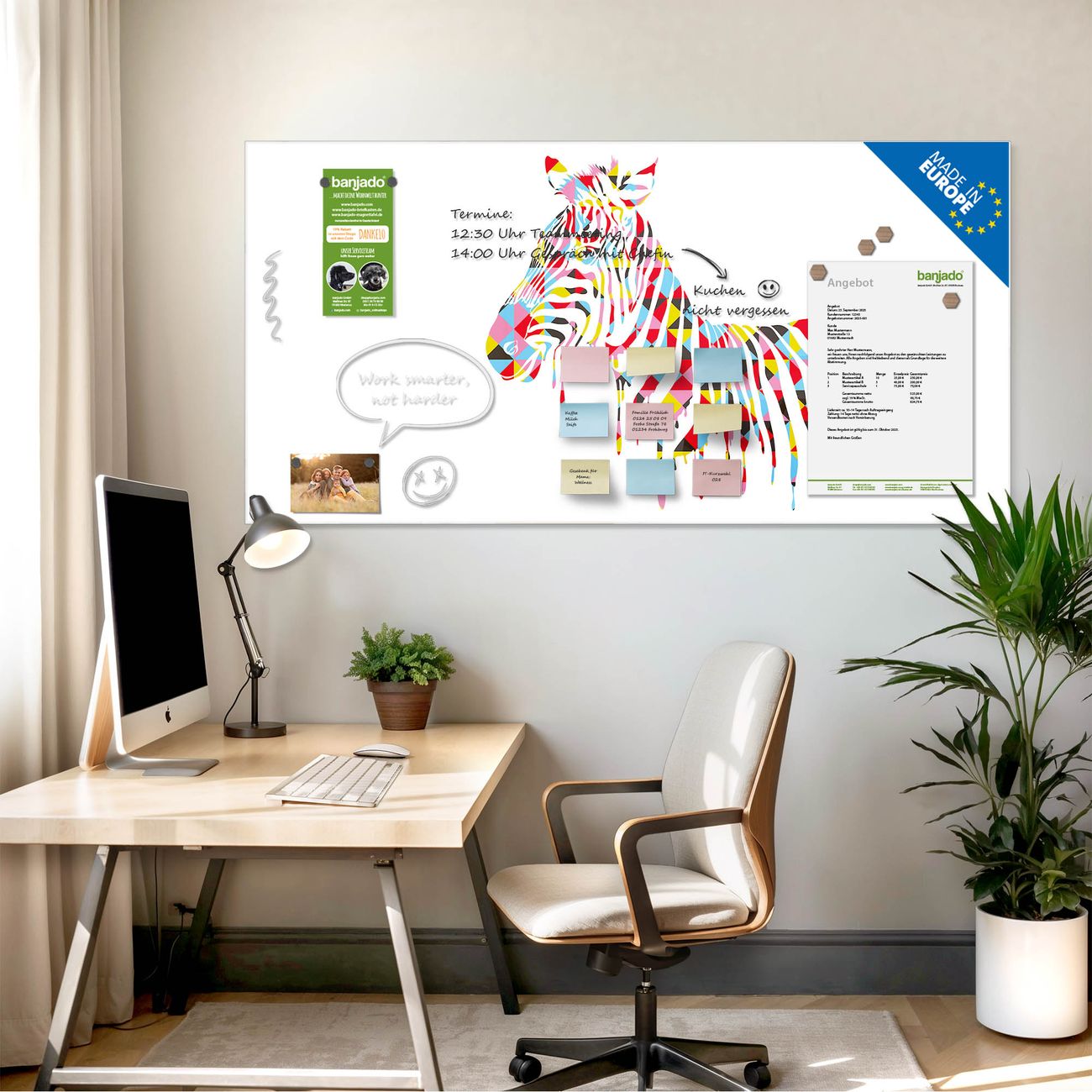 Die banjado Glas Magnettafel mit dem Motiv Motiv Zebra verbindet Funktionalität mit Stil. Sie ersetzt das Zettelchaos durch klare Strukturen und bringt dabei eine warme, natürliche Atmosphäre in Ihr Zuhause. Ob im Büro, in der Küche oder im Eingangsbereich - dieses Design-Board zieht Blicke an und sorgt für Ordnung mit Charakter.