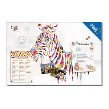 Material: 4mm Sicherheitsglas mit Metallrückwand Eigenschaften: beschreibbar, magnetisch, kratzfest Maße: 75x50x0,6cm, 5,63kg schwer Motiv Nummer 12119 Zebra Zubehör: inklusive 4 Neodym-Magnete