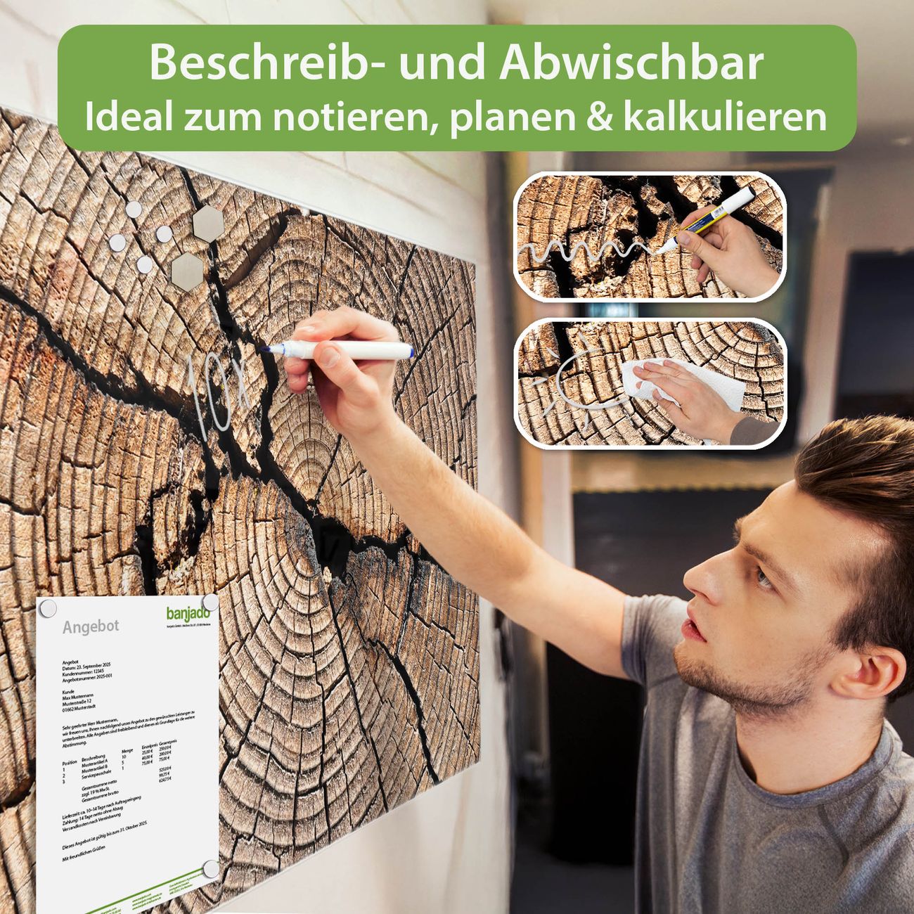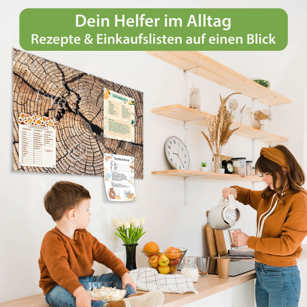 Die banjado Glas Magnettafel mit dem Motiv Motiv Zeichen Der Zeit verbindet Funktionalität mit Stil. Sie ersetzt das Zettelchaos durch klare Strukturen und bringt dabei eine warme, natürliche Atmosphäre in Ihr Zuhause. Ob im Büro, in der Küche oder im Eingangsbereich - dieses Design-Board zieht Blicke an und sorgt für Ordnung mit Charakter.