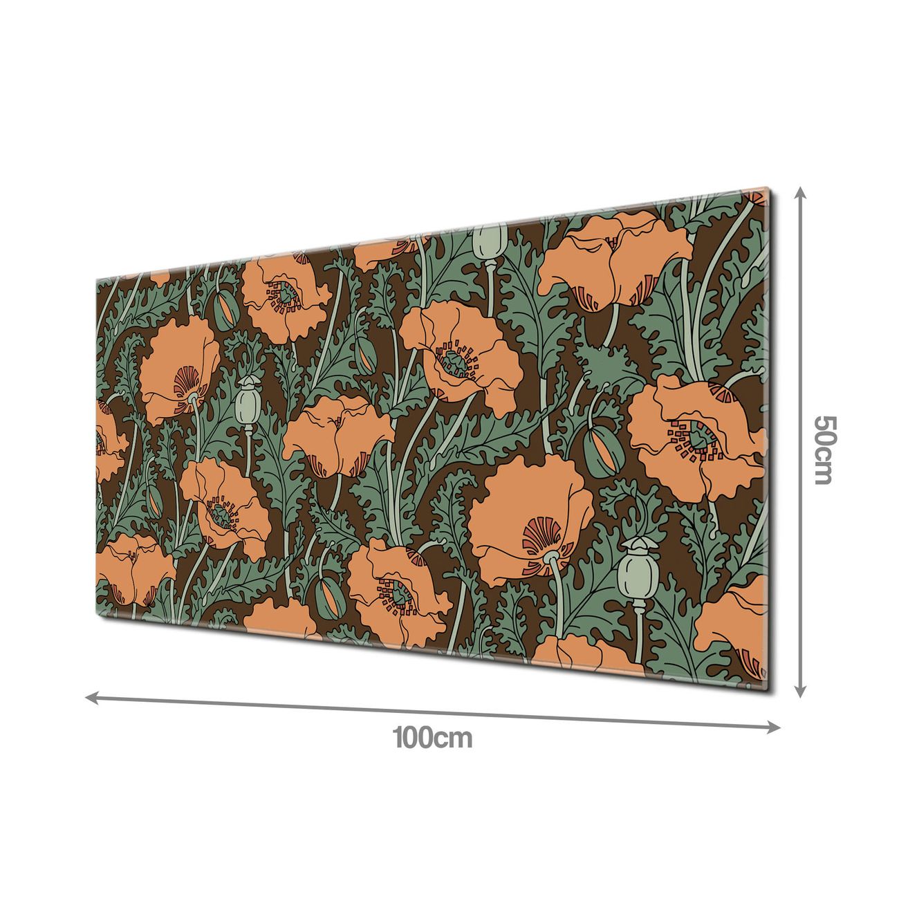 Material: 4mm Sicherheitsglas mit Metallrückwand Eigenschaften: beschreibbar, magnetisch, kratzfest Maße: 100x50x0,6cm, 7,50kg schwer Motiv Nummer 11382 Zeichnung Mohn Zubehör: inklusive 4 Neodym-Magnete