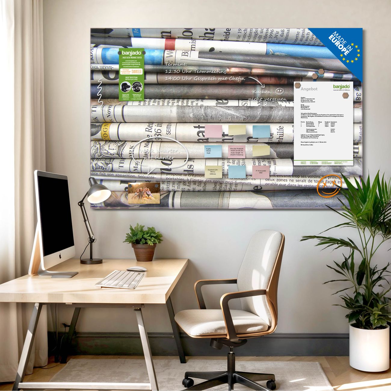 Glas Magnettafel im Querformat Motiv Zeitungen