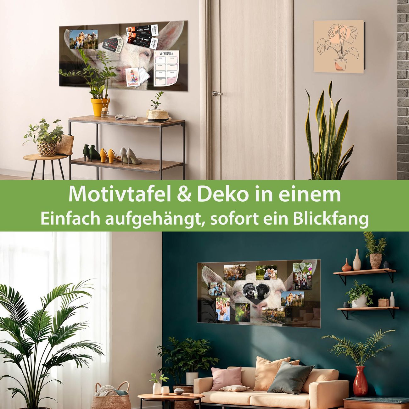 Die banjado Glas Magnettafel mit dem Motiv Motiv Ziege verbindet Funktionalität mit Stil. Sie ersetzt das Zettelchaos durch klare Strukturen und bringt dabei eine warme, natürliche Atmosphäre in Ihr Zuhause. Ob im Büro, in der Küche oder im Eingangsbereich - dieses Design-Board zieht Blicke an und sorgt für Ordnung mit Charakter.