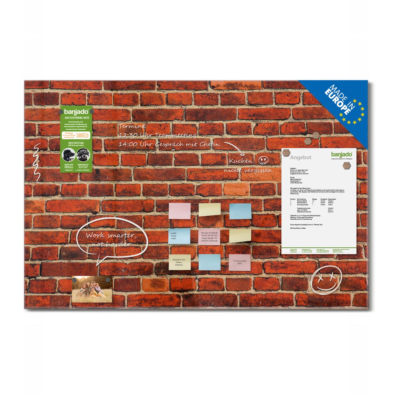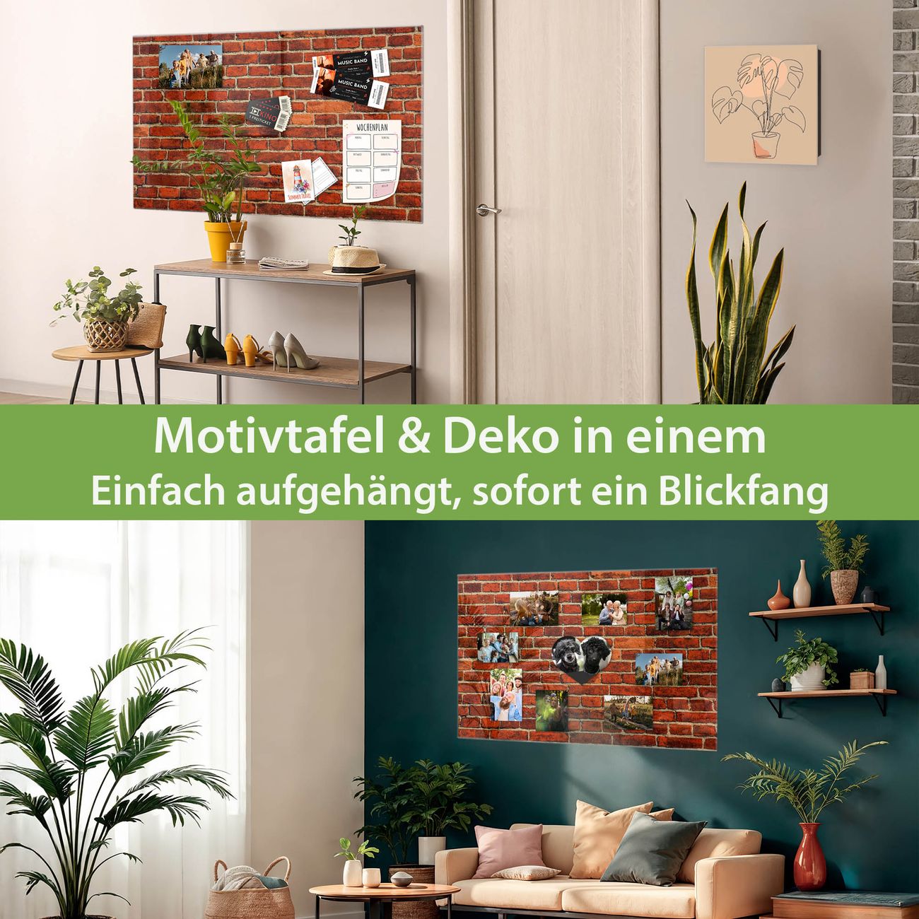 Glas Magnettafel im Querformat Motiv Ziegelwand