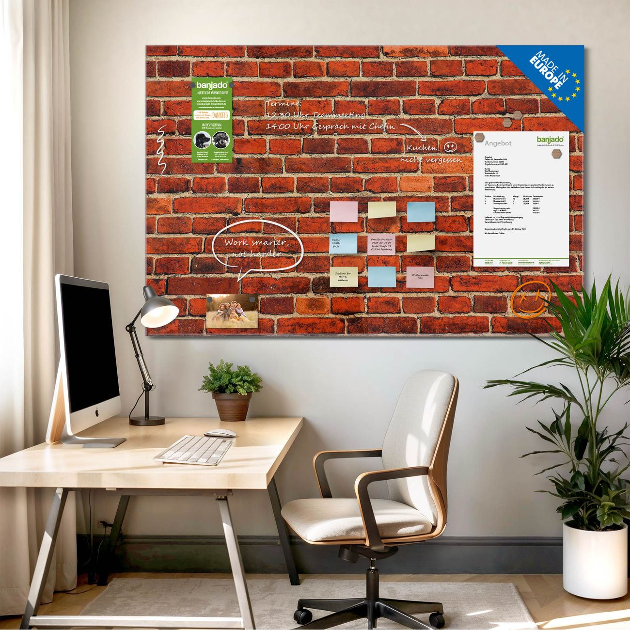 Die banjado Glas Magnettafel mit dem Motiv Motiv Ziegelwand verbindet Funktionalität mit Stil. Sie ersetzt das Zettelchaos durch klare Strukturen und bringt dabei eine warme, natürliche Atmosphäre in Ihr Zuhause. Ob im Büro, in der Küche oder im Eingangsbereich - dieses Design-Board zieht Blicke an und sorgt für Ordnung mit Charakter.