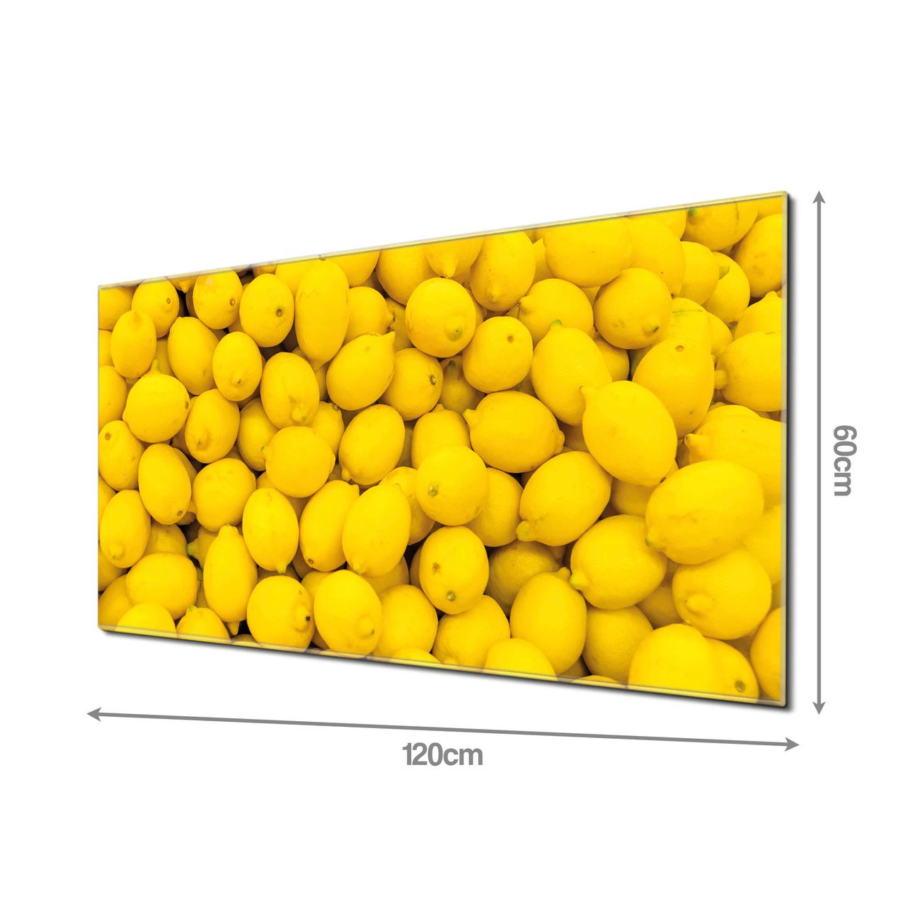 Material: 4mm Sicherheitsglas mit Metallrückwand Eigenschaften: beschreibbar, magnetisch, kratzfest Maße: 120x60x0,6cm, 10,80kg schwer Motiv Nummer 11662 Zitronen Zubehör: inklusive 4 Neodym-Magnete