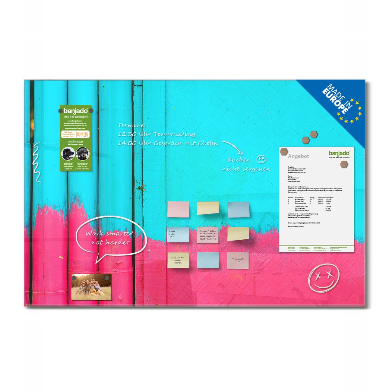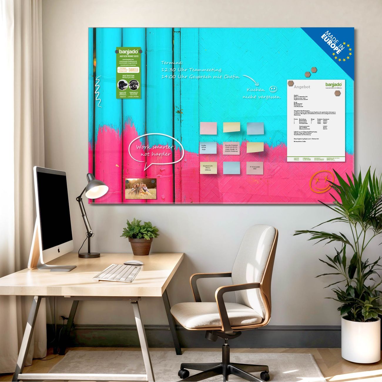 Die banjado Glas Magnettafel mit dem Motiv Motiv Zwei Farben verbindet Funktionalität mit Stil. Sie ersetzt das Zettelchaos durch klare Strukturen und bringt dabei eine warme, natürliche Atmosphäre in Ihr Zuhause. Ob im Büro, in der Küche oder im Eingangsbereich - dieses Design-Board zieht Blicke an und sorgt für Ordnung mit Charakter.
