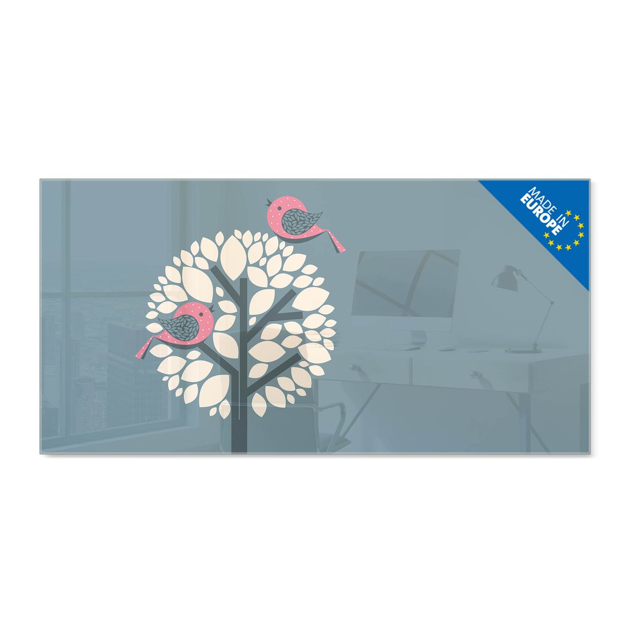 Material: 4mm Sicherheitsglas mit Metallrückwand Eigenschaften: beschreibbar, magnetisch, kratzfest Maße: 100x50x0,6cm, 7,50kg schwer Motiv Nummer 11853 Zwei Rosa Vögel Zubehör: inklusive 4 Neodym-Magnete