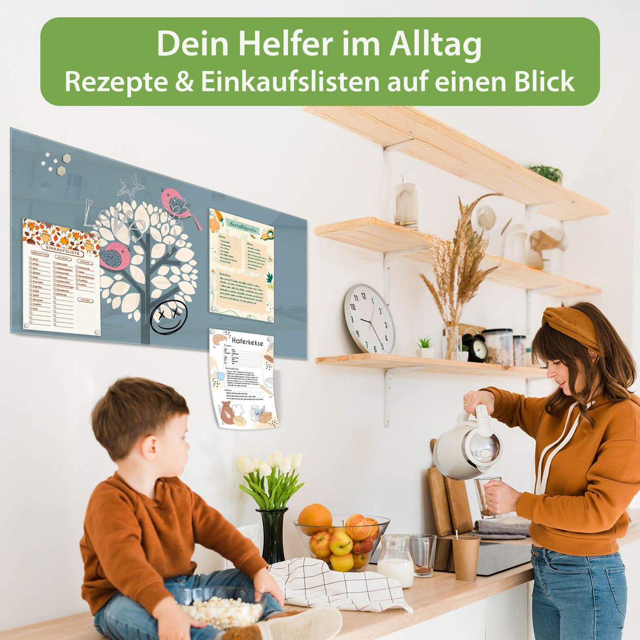 Auf der glatten Glasoberfläche lassen sich Termine, Rezepte oder Notizen ganz einfach mit Kreidestiften festhalten und rückstandslos entfernen. Starke Neodym-Magnete halten Ihre wichtigsten Erinnerungen sicher an Ort und Stelle. So entsteht Ihre ganz persönliche Ideenwand - jeden Tag neu.