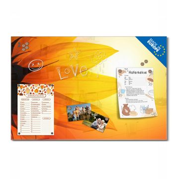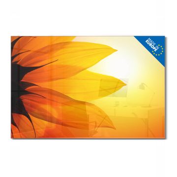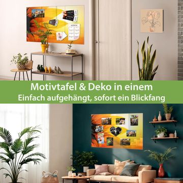 Material: 4mm Sicherheitsglas mit Metallrückwand Eigenschaften: beschreibbar, magnetisch, kratzfest Maße: 75x50x0,6cm, 5,63kg schwer Motiv Nummer 12249 Zwei Sonnen Zubehör: inklusive 4 Neodym-Magnete