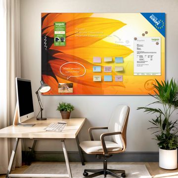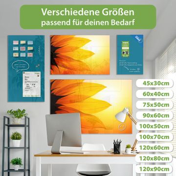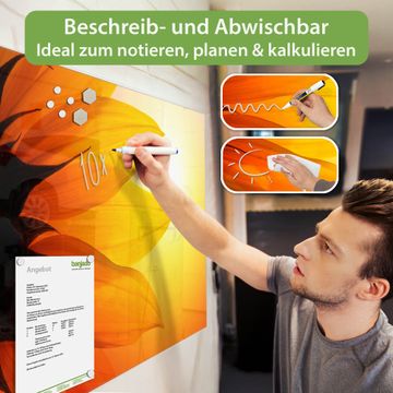 Die banjado Glas Magnettafel mit dem Motiv Motiv Zwei Sonnen verbindet Funktionalität mit Stil. Sie ersetzt das Zettelchaos durch klare Strukturen und bringt dabei eine warme, natürliche Atmosphäre in Ihr Zuhause. Ob im Büro, in der Küche oder im Eingangsbereich - dieses Design-Board zieht Blicke an und sorgt für Ordnung mit Charakter.