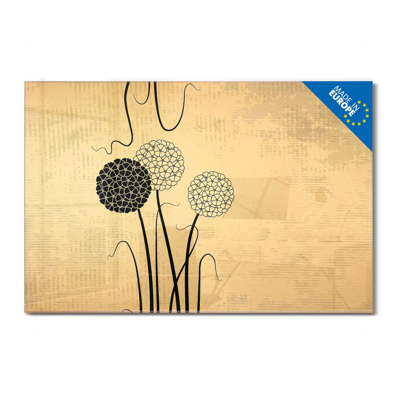 Material: 4mm Sicherheitsglas mit Metallrückwand Eigenschaften: beschreibbar, magnetisch, kratzfest Maße: 120x80x0,6cm, 14,40kg schwer Motiv Nummer 12170 Zwiebel Vintage Zubehör: inklusive 4 Neodym-Magnete