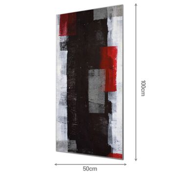 Material: 4mm Sicherheitsglas mit Metallrückwand Eigenschaften: beschreibbar, magnetisch, kratzfest Maße: 50x100x0,6cm, 7,50 kg schwer Motiv Nummer 11556 Abstrakt Rot Zubehör: inklusive 4 Neodym-Magnete
