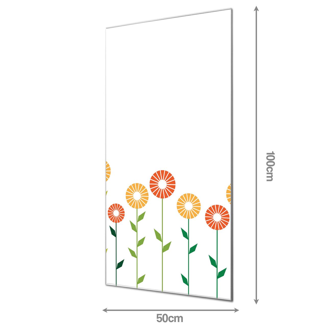 Material: 4mm Sicherheitsglas mit Metallrückwand Eigenschaften: beschreibbar, magnetisch, kratzfest Maße: 50x100x0,6cm, 7,50 kg schwer Motiv Nummer 10921 Abstrakte Margeriten Zubehör: inklusive 4 Neodym-Magnete