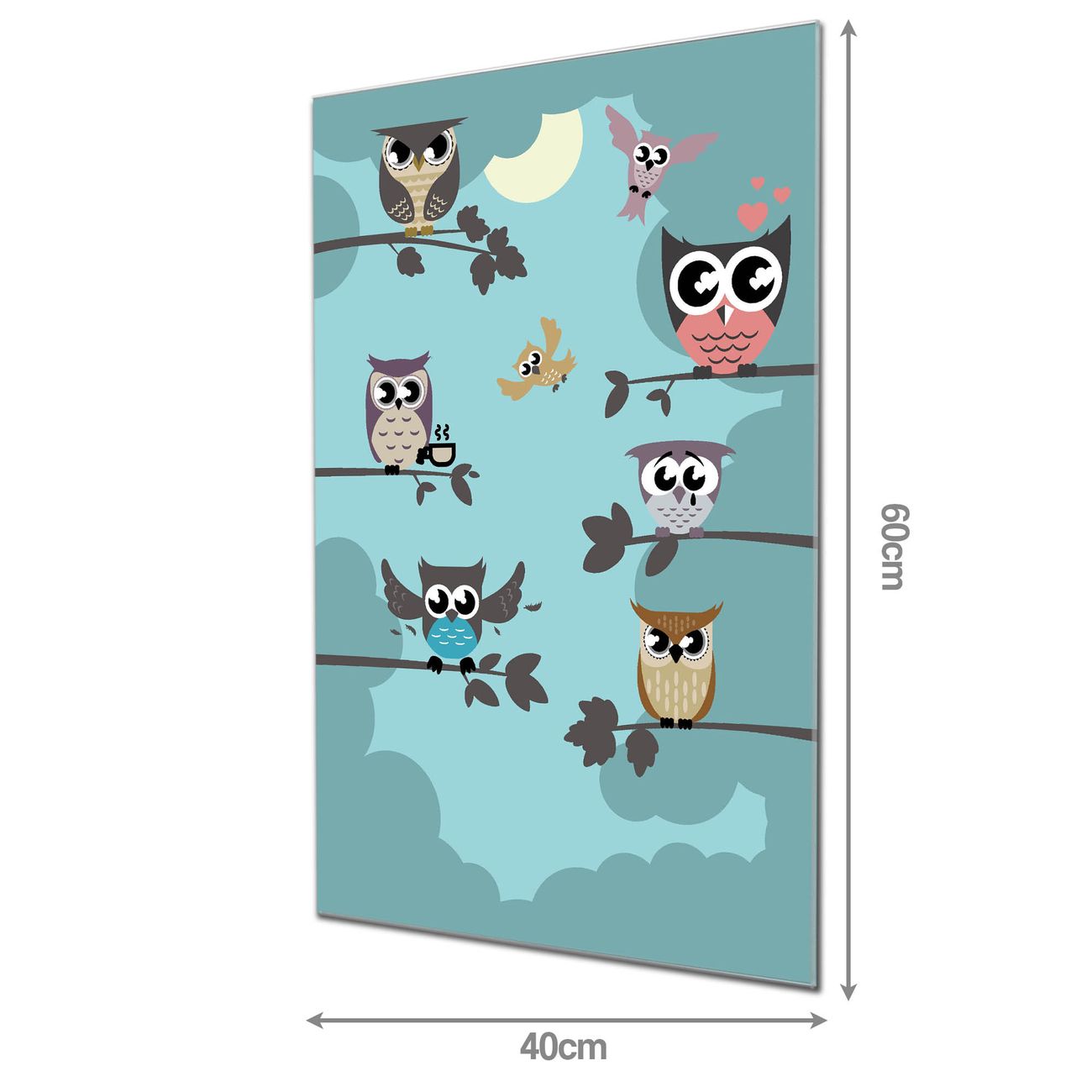 Material: 4mm Sicherheitsglas mit Metallrückwand Eigenschaften: beschreibbar, magnetisch, kratzfest Maße: 40x60x0,6cm, 3,60 kg schwer Motiv Nummer 11562 Acht Eulen Zubehör: inklusive 4 Neodym-Magnete