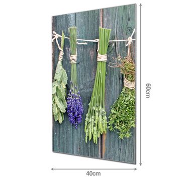 Material: 4mm Sicherheitsglas mit Metallrückwand Eigenschaften: beschreibbar, magnetisch, kratzfest Maße: 40x60x0,6cm, 3,60 kg schwer Motiv Nummer 10422 Acht Kräuter Zubehör: inklusive 4 Neodym-Magnete