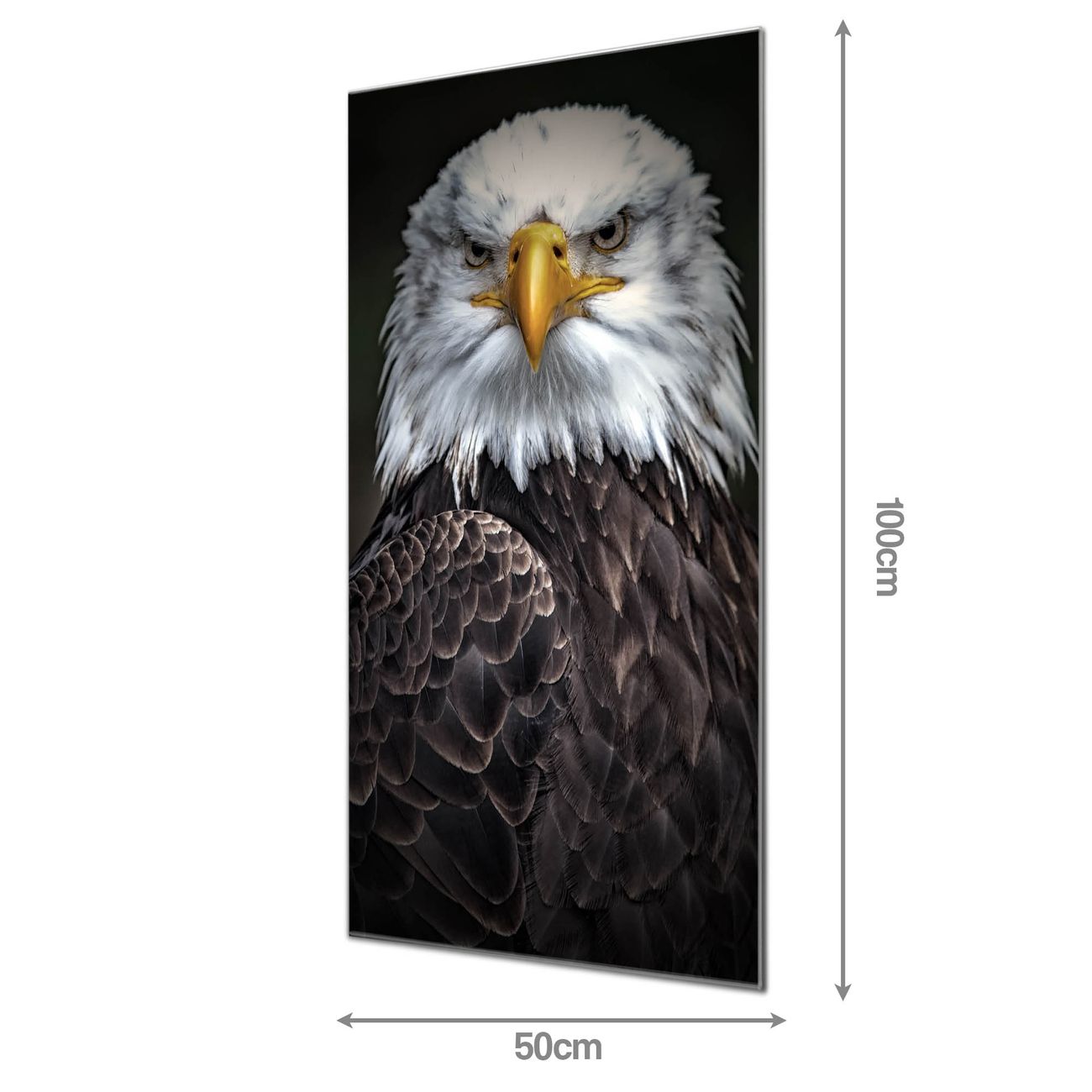 Material: 4mm Sicherheitsglas mit Metallrückwand Eigenschaften: beschreibbar, magnetisch, kratzfest Maße: 50x100x0,6cm, 7,50 kg schwer Motiv Nummer 12369 Adler Zubehör: inklusive 4 Neodym-Magnete