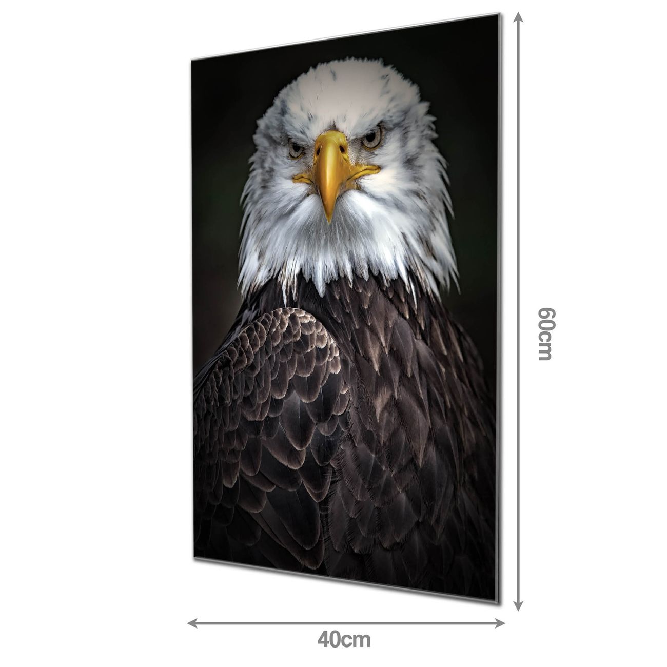 Material: 4mm Sicherheitsglas mit Metallrückwand Eigenschaften: beschreibbar, magnetisch, kratzfest Maße: 40x60x0,6cm, 3,60 kg schwer Motiv Nummer 12369 Adler Zubehör: inklusive 4 Neodym-Magnete
