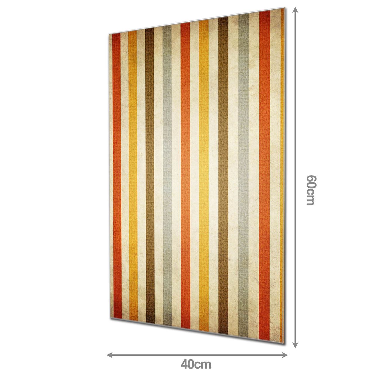 Material: 4mm Sicherheitsglas mit Metallrückwand Eigenschaften: beschreibbar, magnetisch, kratzfest Maße: 40x60x0,6cm, 3,60 kg schwer Motiv Nummer 10821 Alte Streifen Zubehör: inklusive 4 Neodym-Magnete