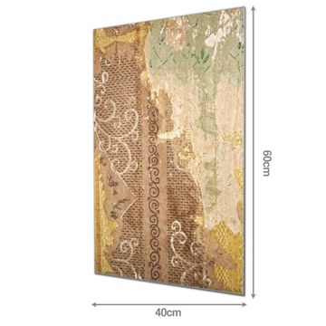 Material: 4mm Sicherheitsglas mit Metallrückwand Eigenschaften: beschreibbar, magnetisch, kratzfest Maße: 40x60x0,6cm, 3,60 kg schwer Motiv Nummer 12614 Alte Tapeten Zubehör: inklusive 4 Neodym-Magnete