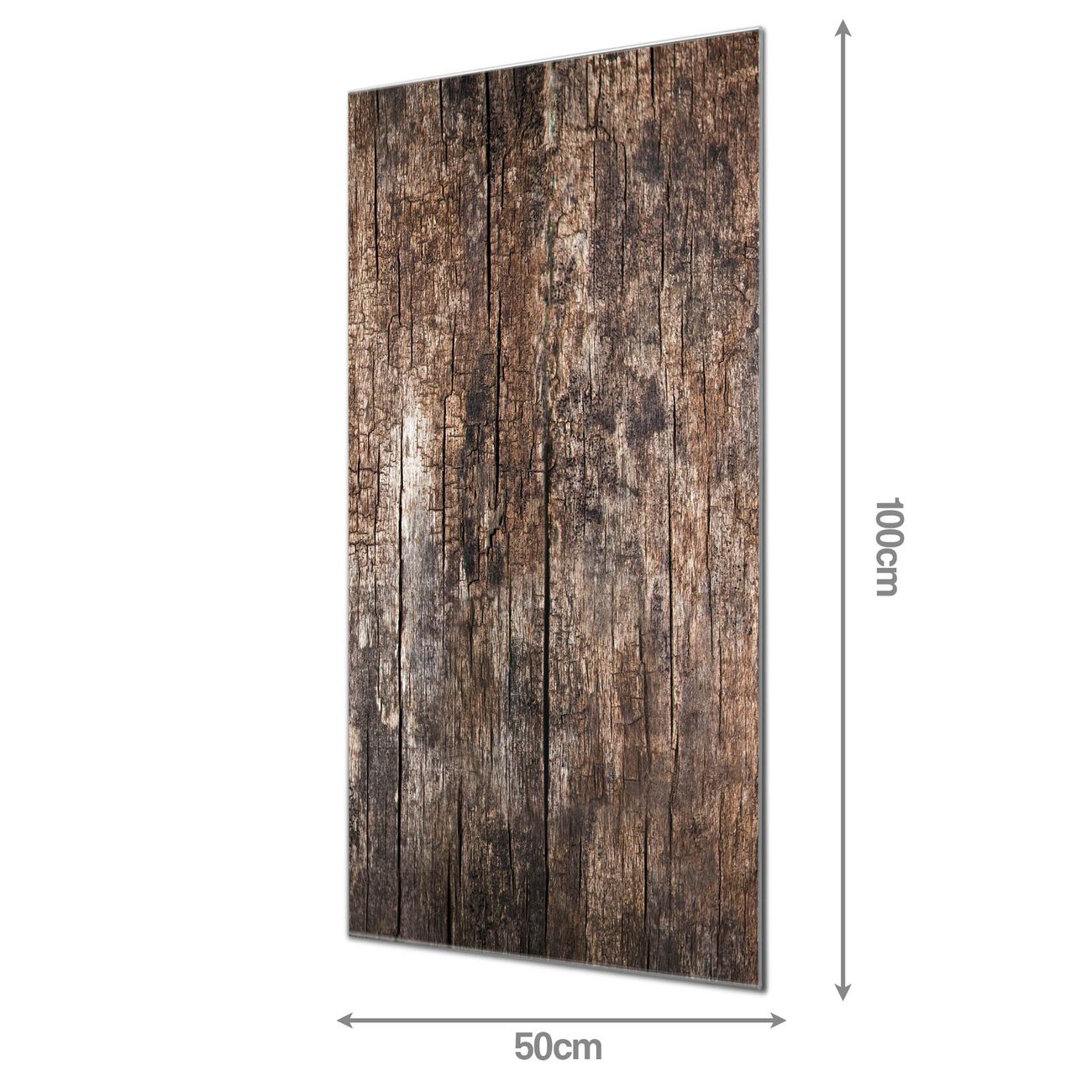 Material: 4mm Sicherheitsglas mit Metallrückwand Eigenschaften: beschreibbar, magnetisch, kratzfest Maße: 50x100x0,6cm, 7,50 kg schwer Motiv Nummer 10633 Altes Holz Zubehör: inklusive 4 Neodym-Magnete