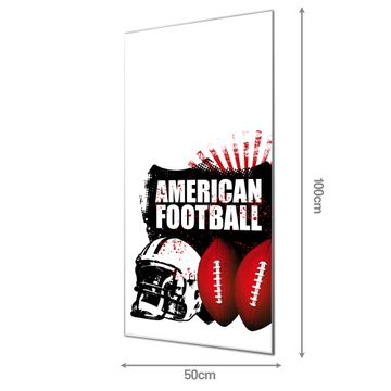 Material: 4mm Sicherheitsglas mit Metallrückwand Eigenschaften: beschreibbar, magnetisch, kratzfest Maße: 50x100x0,6cm, 7,50 kg schwer Motiv Nummer 11148 American Football Zubehör: inklusive 4 Neodym-Magnete