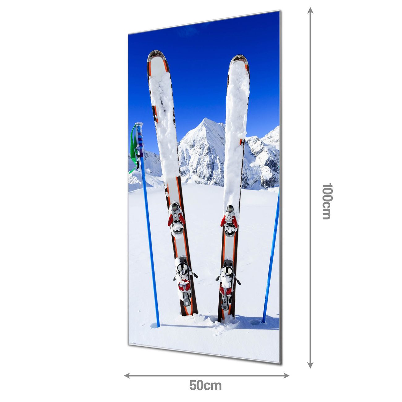 Material: 4mm Sicherheitsglas mit Metallrückwand Eigenschaften: beschreibbar, magnetisch, kratzfest Maße: 50x100x0,6cm, 7,50 kg schwer Motiv Nummer 11150 Apres Ski Zubehör: inklusive 4 Neodym-Magnete