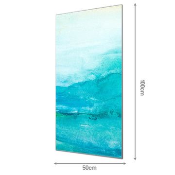 Material: 4mm Sicherheitsglas mit Metallrückwand Eigenschaften: beschreibbar, magnetisch, kratzfest Maße: 50x100x0,6cm, 7,50 kg schwer Motiv Nummer 10270 Aquarell Blau Zubehör: inklusive 4 Neodym-Magnete