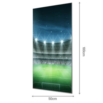 Material: 4mm Sicherheitsglas mit Metallrückwand Eigenschaften: beschreibbar, magnetisch, kratzfest Maße: 50x100x0,6cm, 7,50 kg schwer Motiv Nummer 10875 Arena Zubehör: inklusive 4 Neodym-Magnete