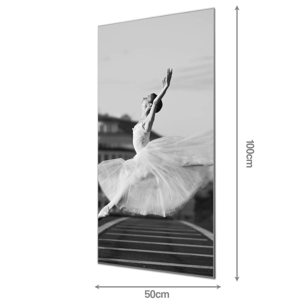 Material: 4mm Sicherheitsglas mit Metallrückwand Eigenschaften: beschreibbar, magnetisch, kratzfest Maße: 50x100x0,6cm, 7,50 kg schwer Motiv Nummer 12809 Ballerina In Moskau Zubehör: inklusive 4 Neodym-Magnete