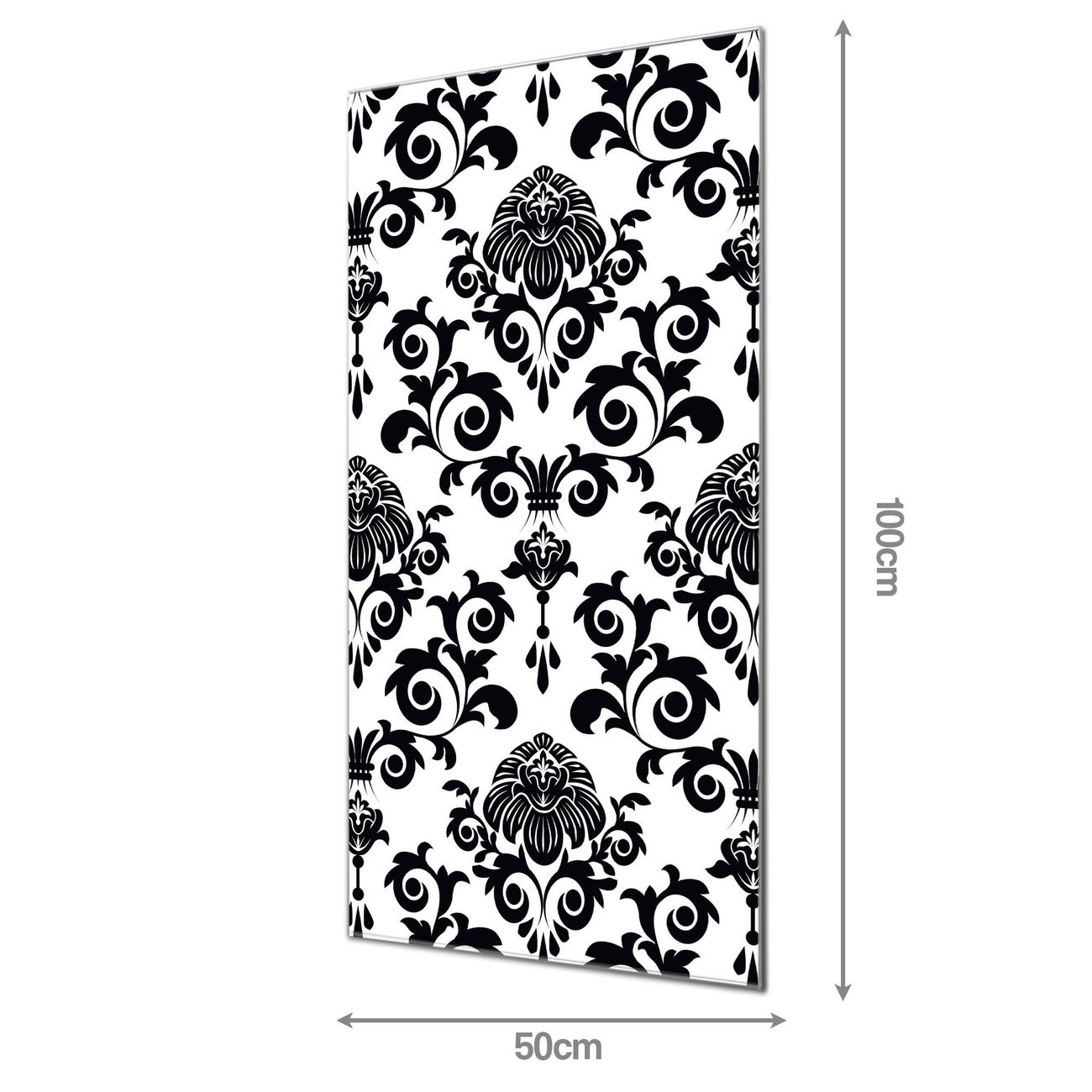 Material: 4mm Sicherheitsglas mit Metallrückwand Eigenschaften: beschreibbar, magnetisch, kratzfest Maße: 50x100x0,6cm, 7,50 kg schwer Motiv Nummer 10054 Barock Zubehör: inklusive 4 Neodym-Magnete