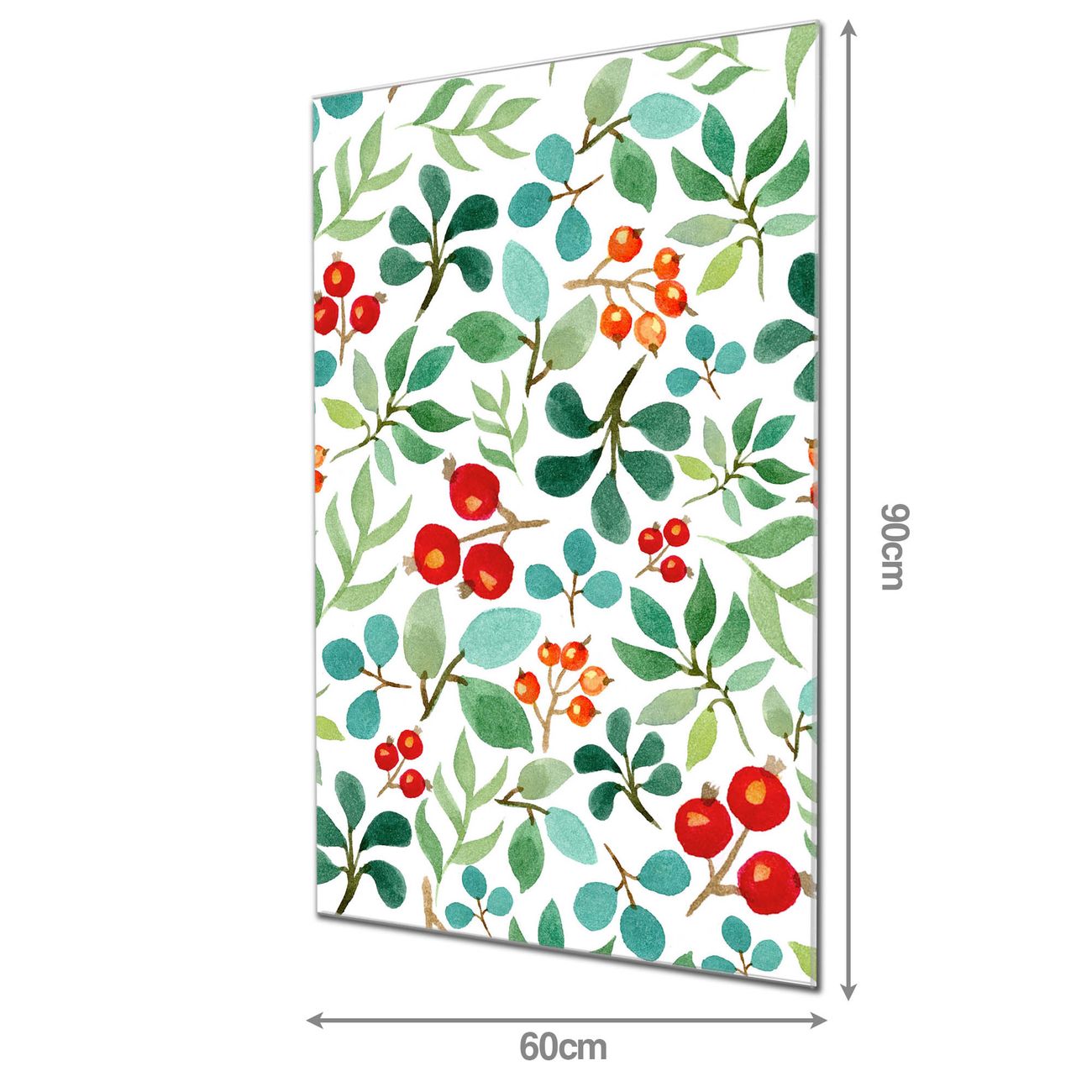Material  4mm Sicherheitsglas mit Metallrückwand Eigenschaften  beschreibbar, magnetisch, kratzfest Maße  60x90x0,6cm, 8,10 kg schwer Motiv  Nummer 12605 Beeren und Blätter Zubehör  inklusive 4 Neodym-Magnete