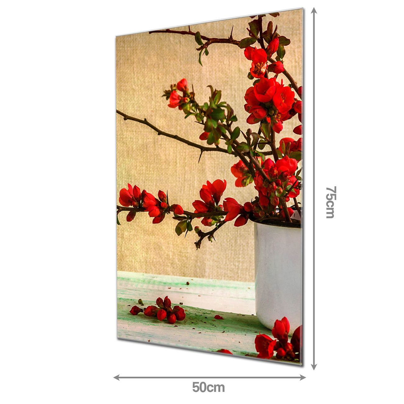 Material: 4mm Sicherheitsglas mit Metallrückwand Eigenschaften: beschreibbar, magnetisch, kratzfest Maße: 50x75x0,6cm, 5,63 kg schwer Motiv Nummer 12348 Berberitzen Zubehör: inklusive 4 Neodym-Magnete