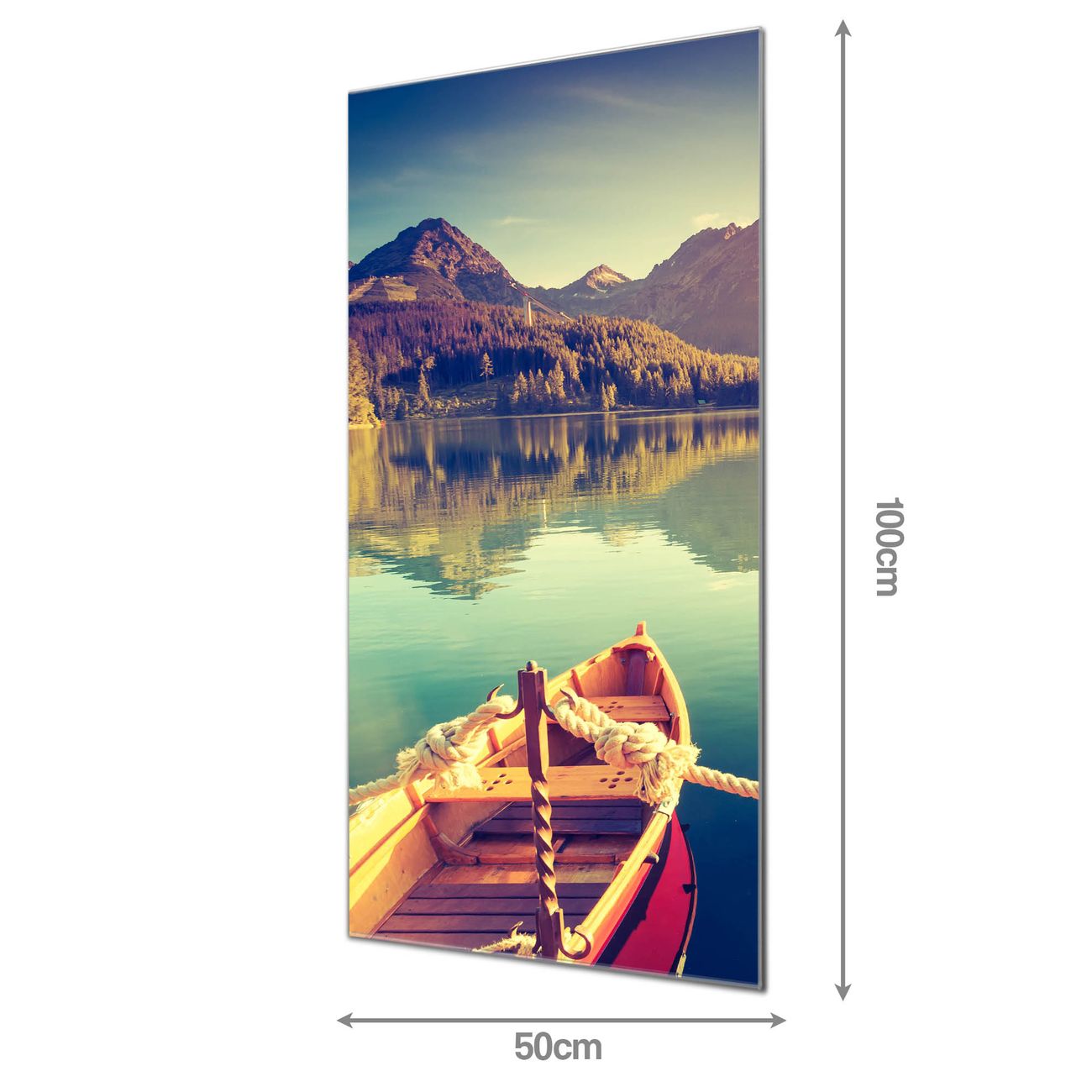 Material: 4mm Sicherheitsglas mit Metallrückwand Eigenschaften: beschreibbar, magnetisch, kratzfest Maße: 50x100x0,6cm, 7,50 kg schwer Motiv Nummer 10965 Drei Boote Am Steg Zubehör: inklusive 4 Neodym-Magnete
