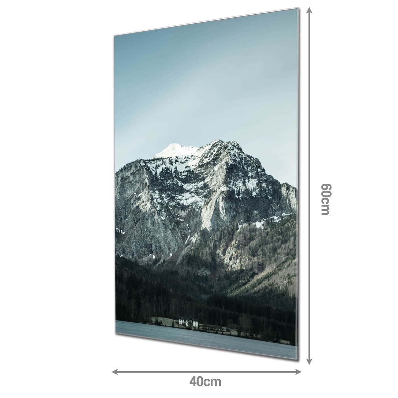 Material: 4mm Sicherheitsglas mit Metallrückwand Eigenschaften: beschreibbar, magnetisch, kratzfest Maße: 40x60x0,6cm, 3,60 kg schwer Motiv Nummer 11831 Im Schatten des Bergs Zubehör: inklusive 4 Neodym-Magnete