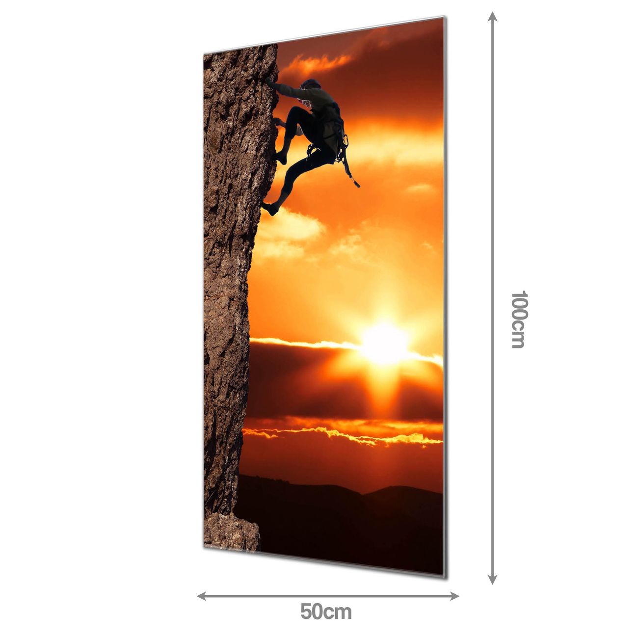 Material: 4mm Sicherheitsglas mit Metallrückwand Eigenschaften: beschreibbar, magnetisch, kratzfest Maße: 50x100x0,6cm, 7,50 kg schwer Motiv Nummer 10117 Bergsteiger Zubehör: inklusive 4 Neodym-Magnete