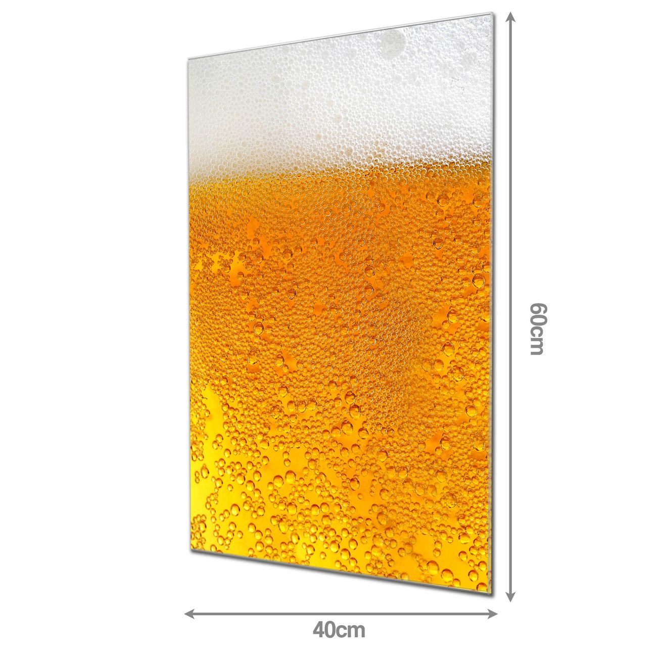 Material: 4mm Sicherheitsglas mit Metallrückwand Eigenschaften: beschreibbar, magnetisch, kratzfest Maße: 40x60x0,6cm, 3,60 kg schwer Motiv Nummer 10145 Bier Zubehör: inklusive 4 Neodym-Magnete