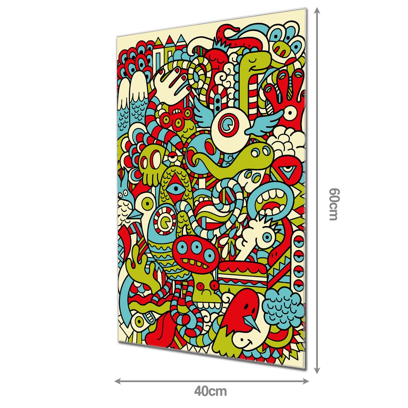 Material: 4mm Sicherheitsglas mit Metallrückwand Eigenschaften: beschreibbar, magnetisch, kratzfest Maße: 40x60x0,6cm, 3,60 kg schwer Motiv Nummer 10400 Birds Worms Freaks Zubehör: inklusive 4 Neodym-Magnete