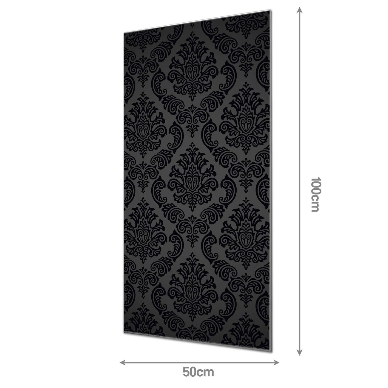 Material: 4mm Sicherheitsglas mit Metallrückwand Eigenschaften: beschreibbar, magnetisch, kratzfest Maße: 50x100x0,6cm, 7,50 kg schwer Motiv Nummer 10199 Black Deluxe Zubehör: inklusive 4 Neodym-Magnete