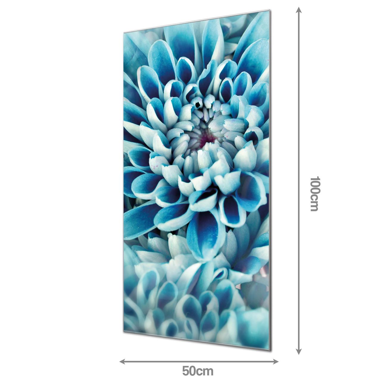 Material: 4mm Sicherheitsglas mit Metallrückwand Eigenschaften: beschreibbar, magnetisch, kratzfest Maße: 50x100x0,6cm, 7,50 kg schwer Motiv Nummer 11444 Blaue Blüten Zubehör: inklusive 4 Neodym-Magnete