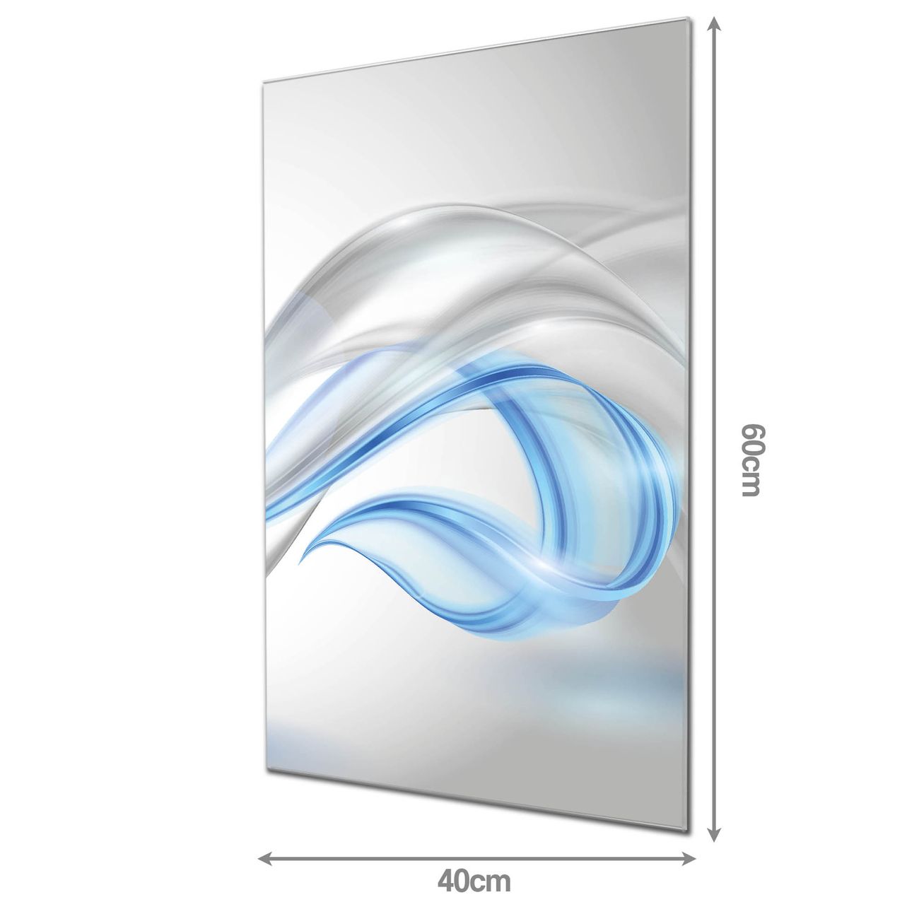 Material: 4mm Sicherheitsglas mit Metallrückwand Eigenschaften: beschreibbar, magnetisch, kratzfest Maße: 40x60x0,6cm, 3,60 kg schwer Motiv Nummer 10736 Blauer Schleier Zubehör: inklusive 4 Neodym-Magnete