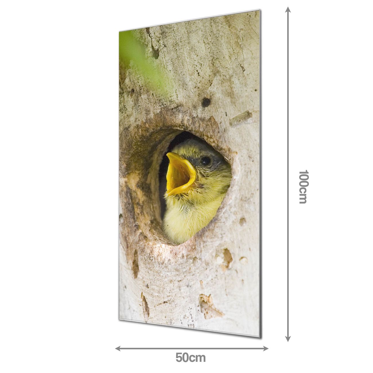 Material: 4mm Sicherheitsglas mit Metallrückwand Eigenschaften: beschreibbar, magnetisch, kratzfest Maße: 50x100x0,6cm, 7,50 kg schwer Motiv Nummer 10520 Blaumeise Zubehör: inklusive 4 Neodym-Magnete