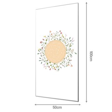 Material: 4mm Sicherheitsglas mit Metallrückwand Eigenschaften: beschreibbar, magnetisch, kratzfest Maße: 50x100x0,6cm, 7,50 kg schwer Motiv Nummer 10926 Hibiskus Kreis Zubehör: inklusive 4 Neodym-Magnete