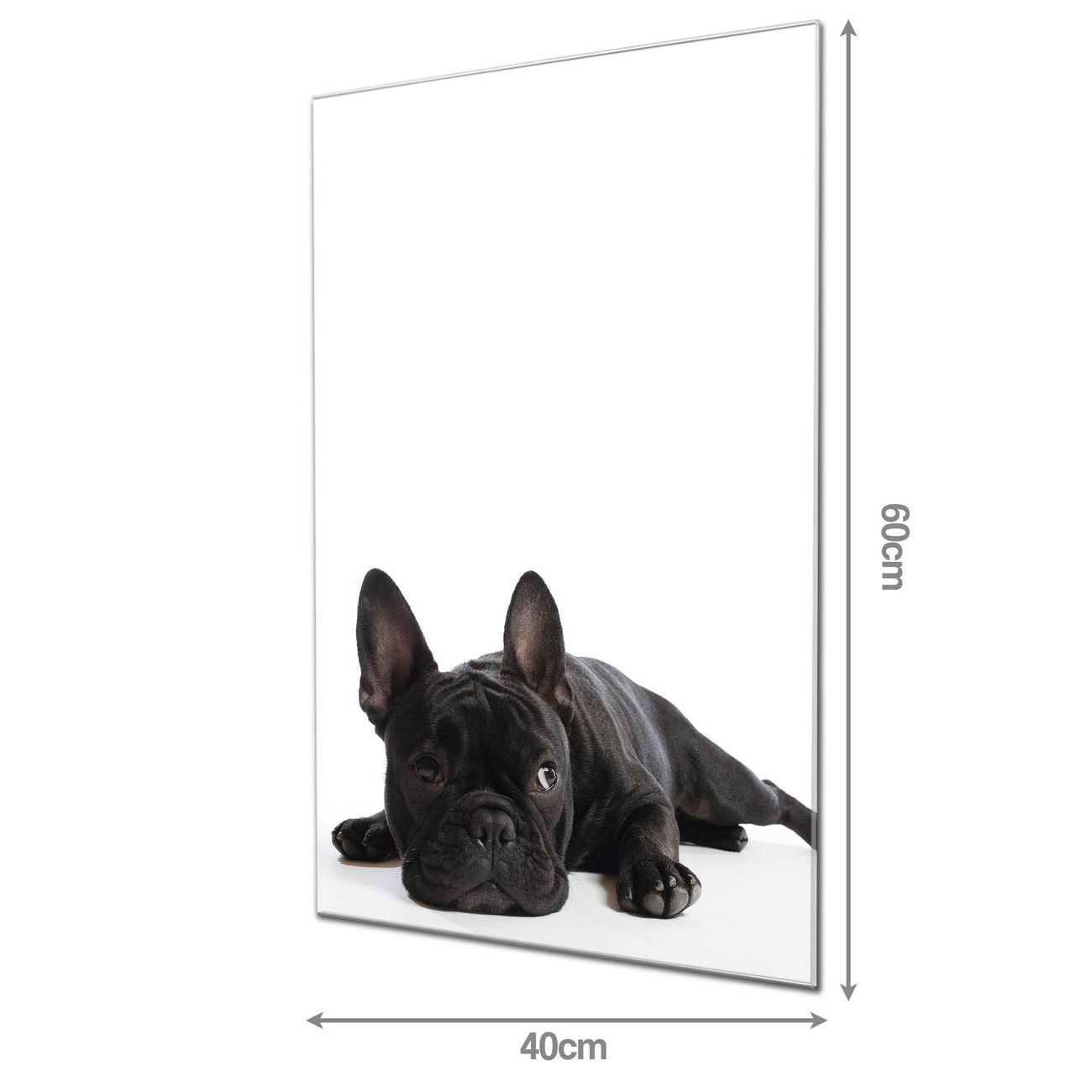 Material: 4mm Sicherheitsglas mit Metallrückwand Eigenschaften: beschreibbar, magnetisch, kratzfest Maße: 40x60x0,6cm, 3,60 kg schwer Motiv Nummer 10004 Bulldogge Zubehör: inklusive 4 Neodym-Magnete